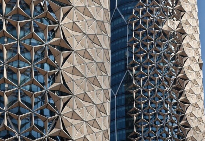 مګر نوښتګر ډیزاین له ودانیو سره مرسته کولی شي چې تودوخه کمه کړی. یوه بیلګه یې د البهار برجونه دی، دا ۲۶ پوړیزه ودانۍ، قاتېدونکي پلېټونه لري چې د کمپیوټر په وسیله کنټرولېږي او د سیوری د رامینځته کولو لپاره د لمر له موقعیت سره سم خلاصیږی او نژدې کیږی.