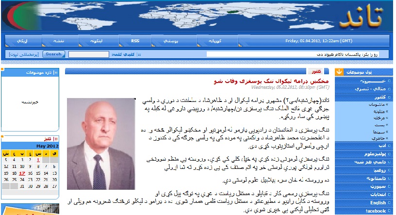 تاند (چهارشنبه/مې۲) مشهور ډرامه لیکوال او د ظاهرشاه د سلطنت د دورې د ولسي جرګې غړی فاتح الملک ننګ یوسفزی د ۲۰۱۲ د مې په ۲ مه/چهارشنبه/ د ورپېښې ناروغۍ له کبله په پېښور کې ساه ورکړه.