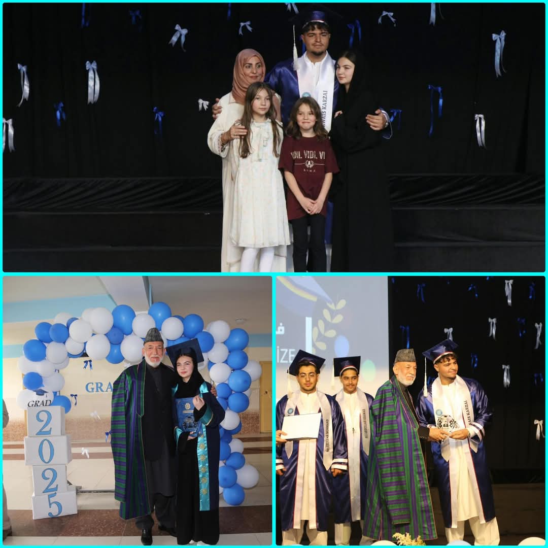 تاند【پنجشنبه د غبرګولي ـ جوزا ۸مه】پخواني ولسمشر حامد کرزي په خپله ايکس پاڼه له دولسم ټولګي د خپل زوی په فراغت غونډه کې خوښي ښودلې چې، زوی یې میرویس کرزی د هېواد د ځوانانو یوې ډلې، په ګډون له ښوونځي فارغ شو.
