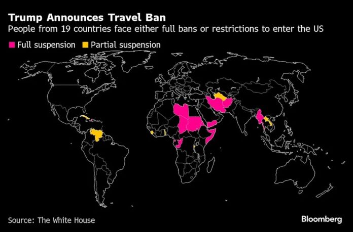 د سفر په دې بندیز کې، چې د چهارشنبې په ورځ اعلان شو، د افغانستان، میانمار، چاد، کانګو جمهوریت، استوایي ګینې، اریتریا، هایتي، ایران، لیبیا، سومالیا، سوډان او یمن اتباع شاملېږي. د دې پرېکړې پر اساس د بورونډي، کیوبا، لاوس، سیرالیون، توګو، ترکمنستان او وینزویلا وګړو ته په محدود ډول د ورتګ اجازه ورکول کېږي.