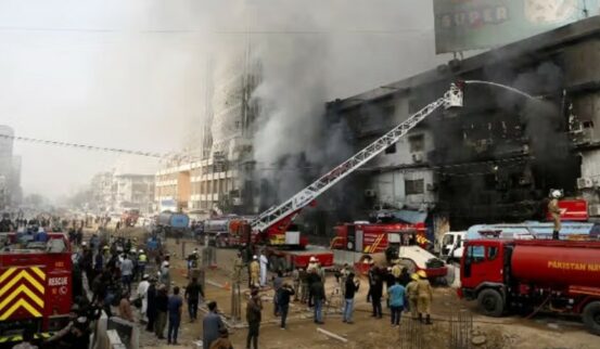اور د اېم اې جناح سړک پر سر په ګل پلازه کې د شپې پر لسو بجو پیل شو، چې له امله یې د ودانۍ څو برخې ونړېدې.