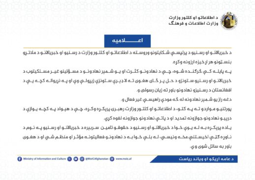 خبرپاڼه کاږي چې دغو سازمانونو آن په نړيواله کچه یې د افغانستان د رسنيو ملاتړو بنسټونو باور ته زيان رسولی و.