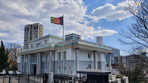 یاد سفارت چې د توکیو ښار د میناتو په سیمه کې موقعیت لري، تر اوسه د افغانستان د پخواني جمهوري حکومت د ډیپلوماټانو له لوري اداره کېده.