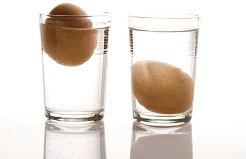 یو ګیلاس سړې اوبه واخلئ او هګۍ پکې واچوئ. که هګۍ د اوبو په تل کې په څنګ پرېوځي، نو هغه بالکل تازه ده. که هګۍ ډوبه شي خو نېغه ودرېږي، بیا هم د خوړلو وړ ده.